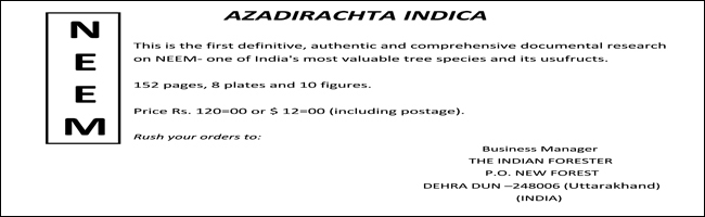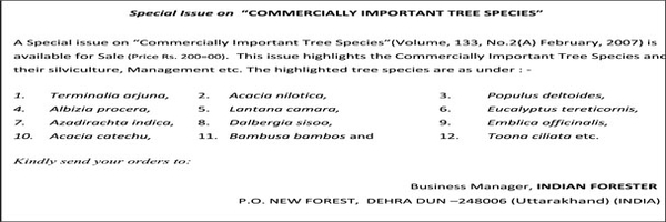 New Message Indian Forester Calendar is now available on Google Play Store Brandis, Schlich, S.K. Seth, IFS-1985 Batch, Chaturvedi and Indian Forester prizes for the year 2018 "The opinions and Views of our esteemed readers are invited on the New/Changed format of Indian Forester Journal in April, 2018 issue."Please send your views on our email id : indfor1875@gmail.com Indian Forester IFS 1985 Batch Prize Brandis Prize Special issues of Indian Forester (print copy) are available for sale on discount |